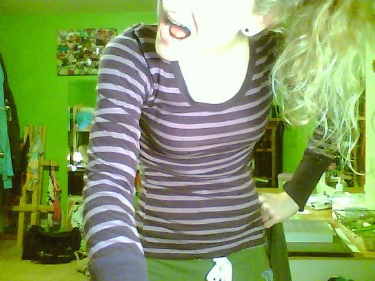 No Boundaries Scoop Neck Shirt. I have this shirt ^ and one in plain green and they are so comfy and stretchy. I got them at Walmart for $6.00 each.