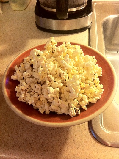 A severely under-cooked microwave corn muffin for one. I love dough.