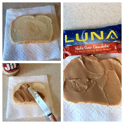 Luna bar & Italian bread with peanut butter