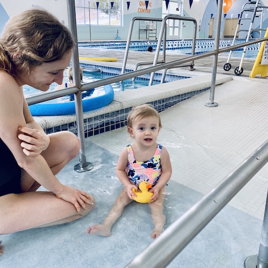 Onto swimming! My mom, Sadie, and I spent the day together last week and decided to take Sadie for a dip in the pool at my parents’ local YMCA and it was a ton of fun!