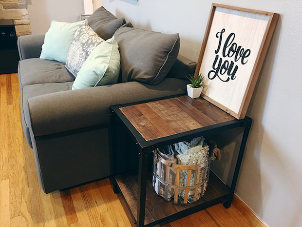 I put the basket under our end table and I’m hoping Mavis doesn’t chew on the handles! Or the blankets. Or the basket. I can totally see her trying to chew a steel basket 😉