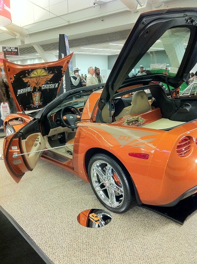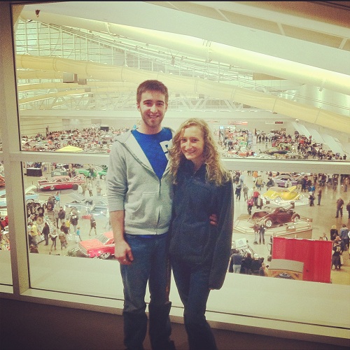 Jimmy and I got in trouble for being above the whole car show and taking this picture. Jimmy’s brother and friend thought it would be fun to go to the upper level of the convention center and hang out even though a few signs said not to. We spent about 10 minutes upstairs and then got ushered back down. Ooops 😉