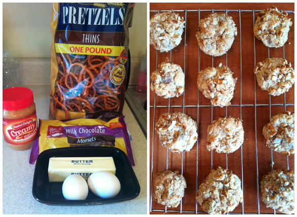 Peanut butter, pretzel, and milk chocolate chip cookies