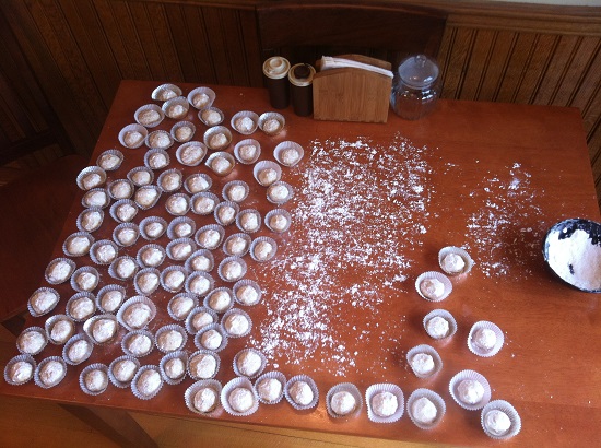 Mexican wedding cookies… plus a messy kitchen table 😉
