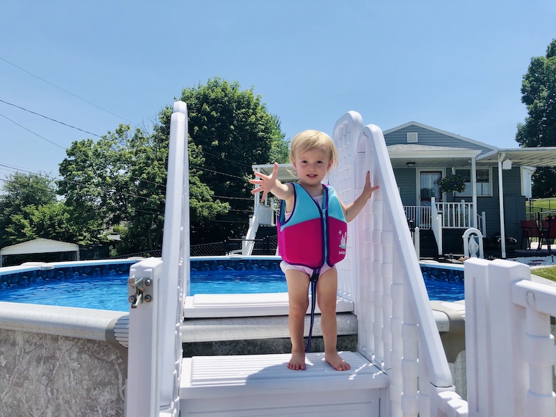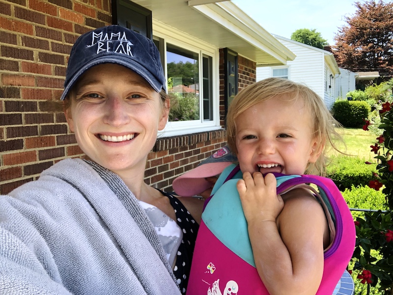 Swimming with Sadie totally had me missing swimming on the swim team. I swam competitively from middle school through a bit of college, was a lifeguard, and taught swim lessons. It’s funny, though, that I don’t feel like I can teach Sadie to swim and would rather sign her up for lessons?!