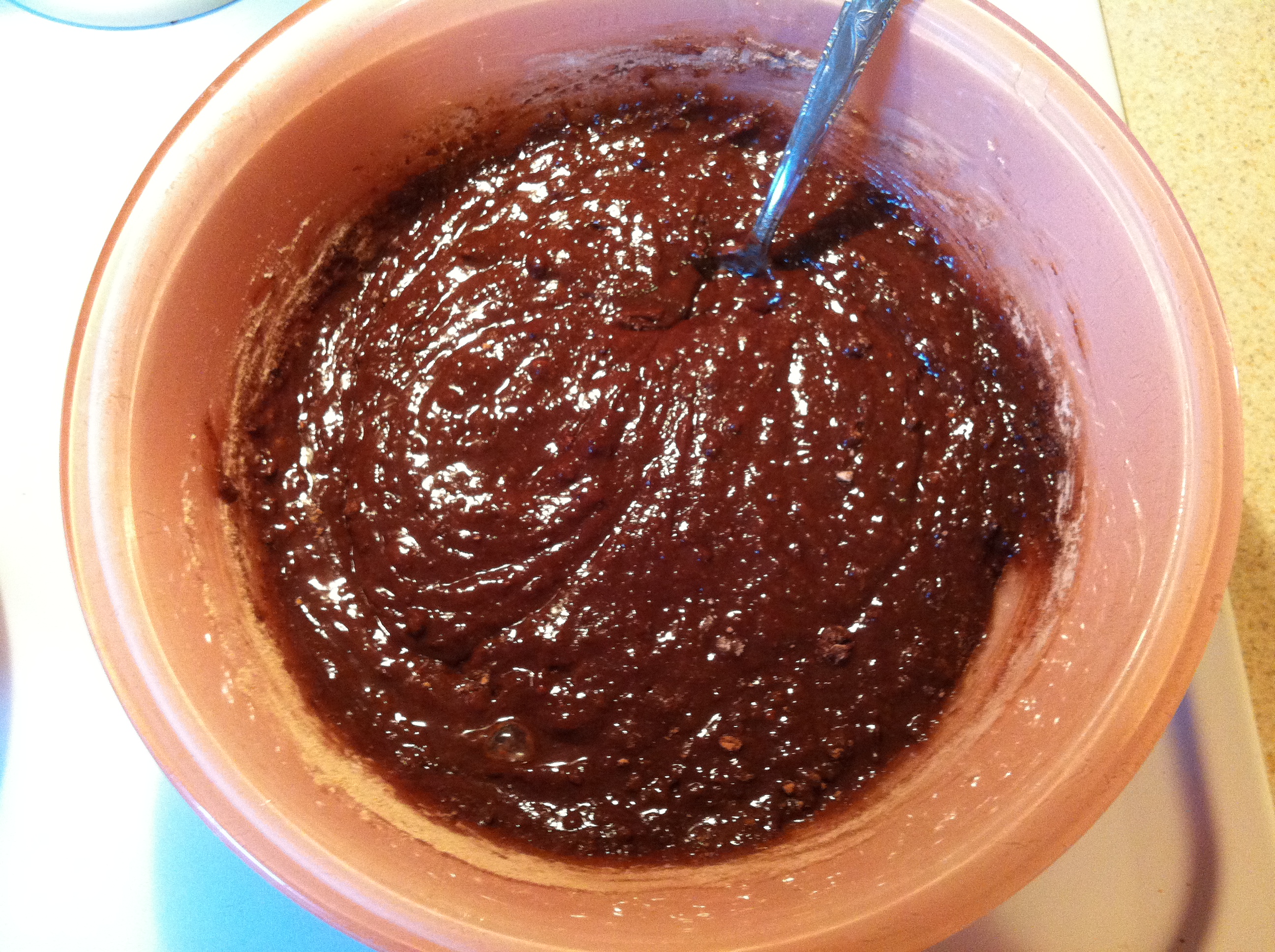 Melt 2 sticks of butter… add some sugar… flour.. and cocoa powder..