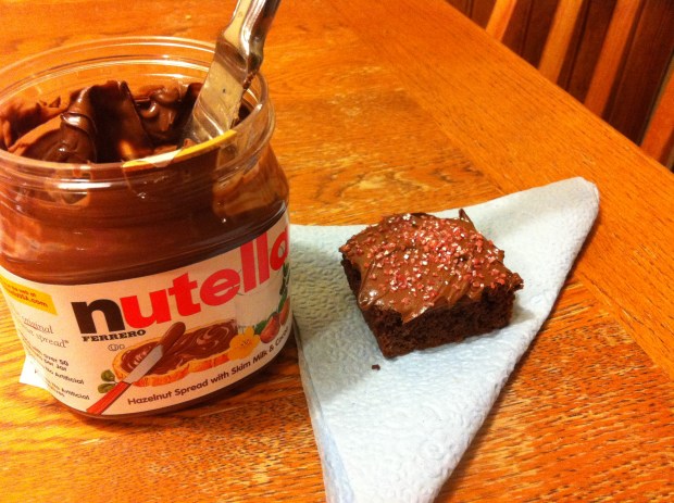 Moving on. To brownies! Friday night I was in a baking mood so I decided to make homemade brownies with “The Perfect Brownie Pan” that I got my mom for Christmas last year. She used it like once haha. Good times.