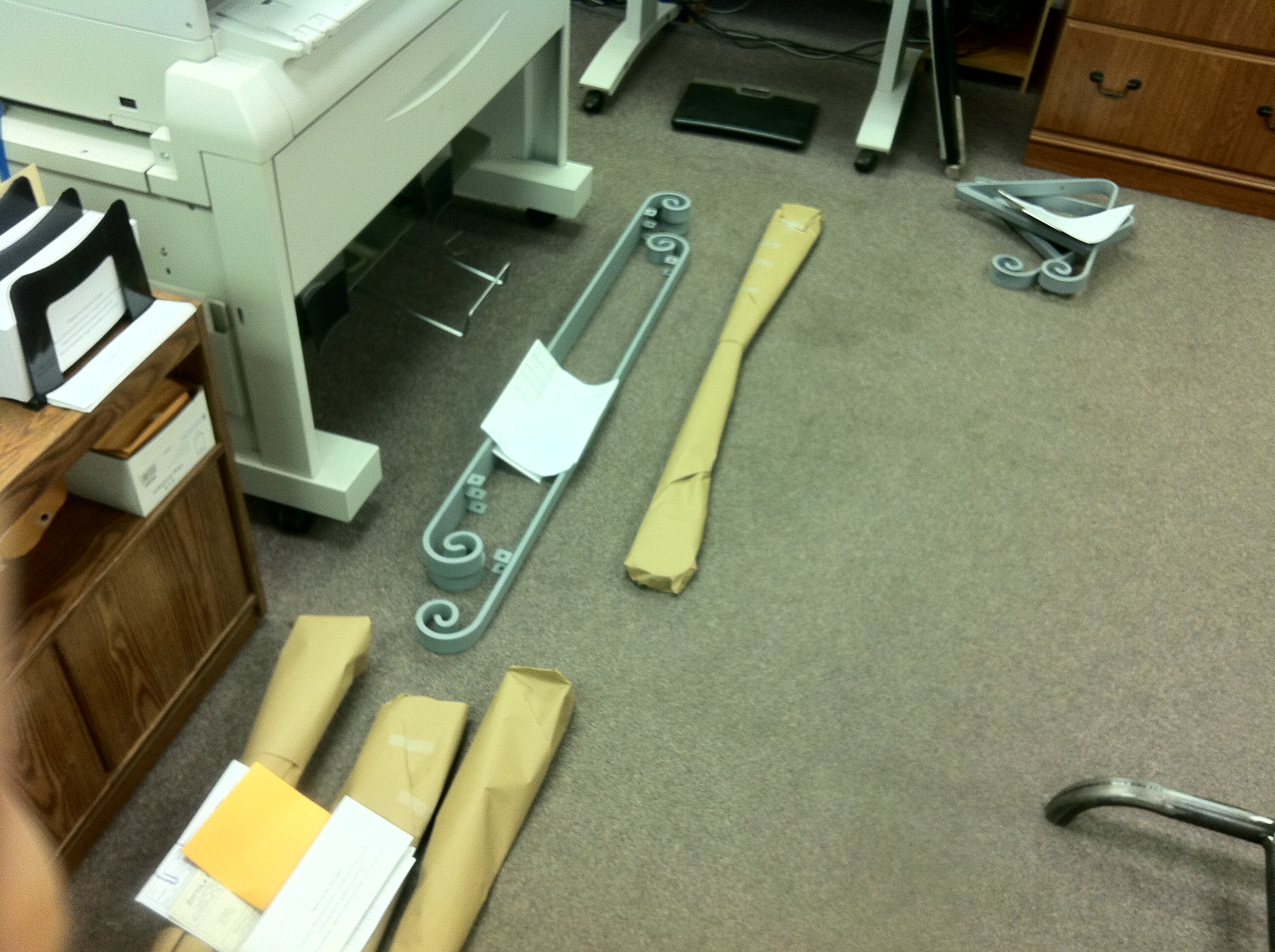 I got to wrap some railings that Jimmy made to be shipped out to customers.
