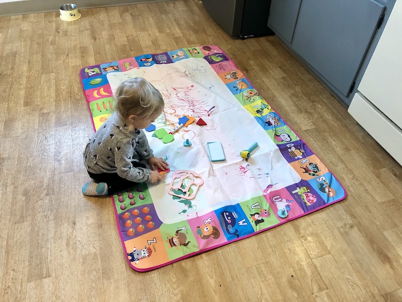 Niva went to doggy daycare and I pulled out Sadie’s water painting mat that I’ve been saving for, well, a rainy day.