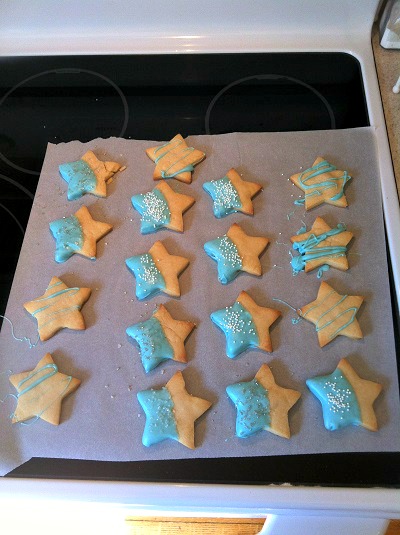 White chocolate-dipped shortbread cookies loosely based off of this recipe. I used white chocolate and dyed it blue. Yes, my chocolate “drizzling skills” need work. Haha.
