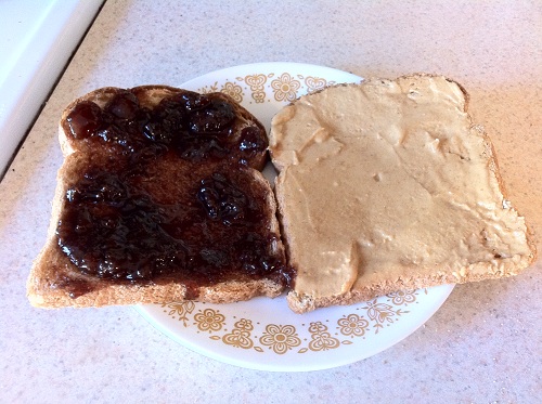 ^This was lunch at home recently. Um, I love peanut butter and jelly.