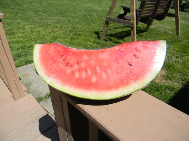 See that watermelon? I ate that whole hunk as dessert after my lunch. Um YUM. I am a watermelon freak. Just wait until it starts to be cheap in the store.. you will get sick of me.