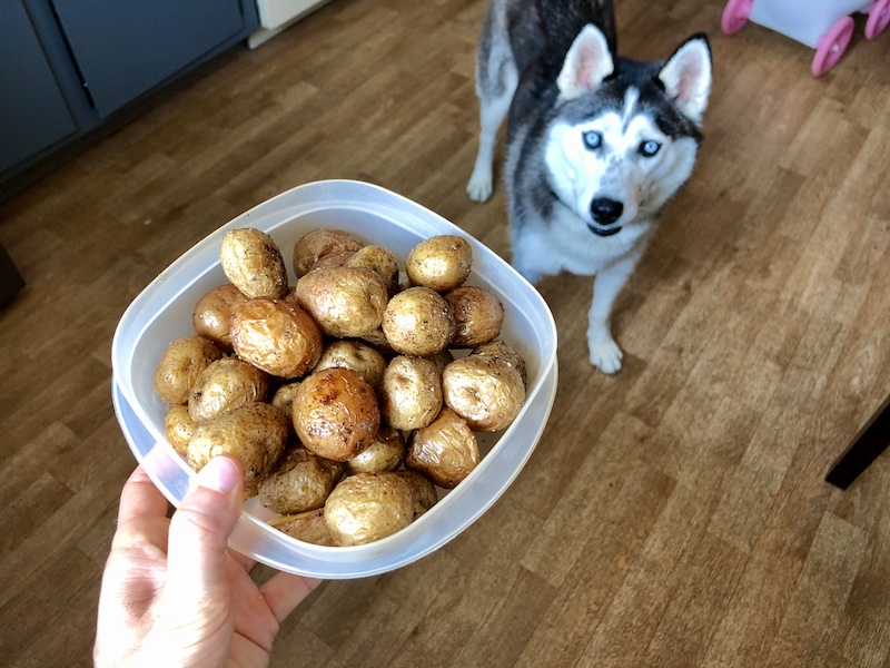 I also cooked a batch of baby potatoes with Niva keeping a very watchful eye on the whole process.