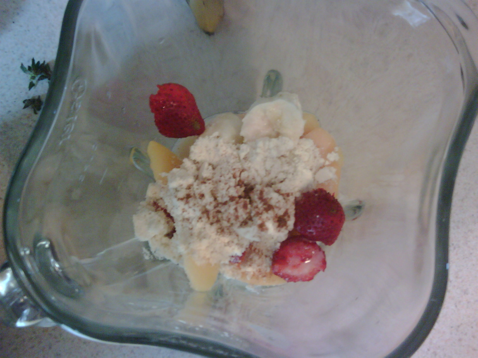 I made a strawberry/blueberry/raspberry smoothie and it didn’t taste good. (What the heck?!?) So I added peanut butter. Then it tasted like pb&j. Kinda cool.
