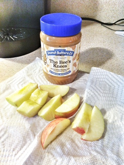 snackA snack of apple slices and peanut butter to dip them in!