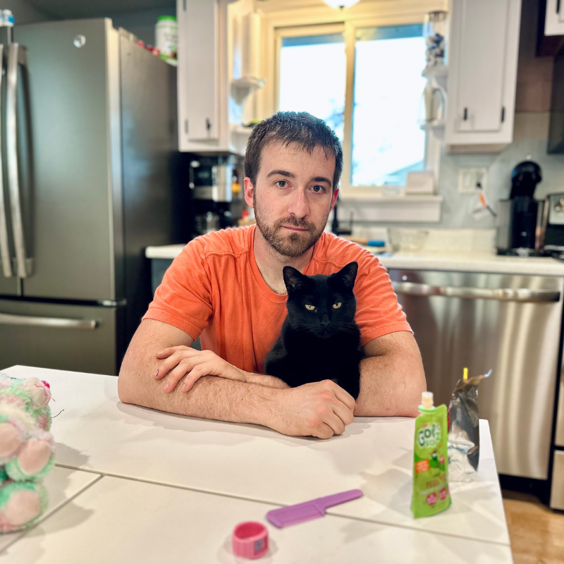 Later on, we were playing with Sadie at our kitchen table and Malcolm casually hopped into Jimmy’s arms. He also looked majestic… or maybe like a mob boss? A mini panther?