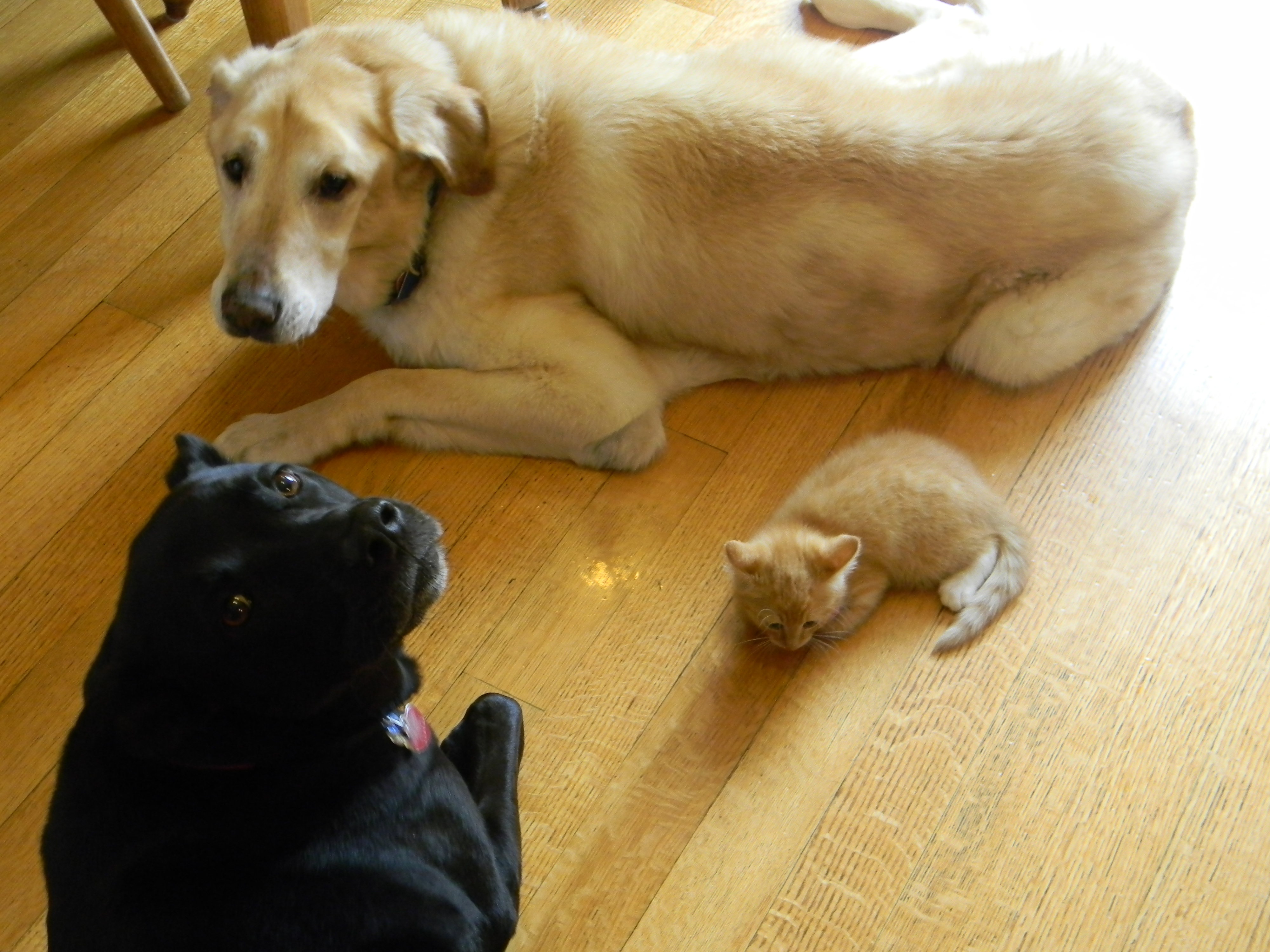 First of all, I think it’s pretty cool that my mom and dad have basically transformed their sun porch into a play room for their grandkids. And the fact that their cat “plays” with the toys? Icing on the cake!