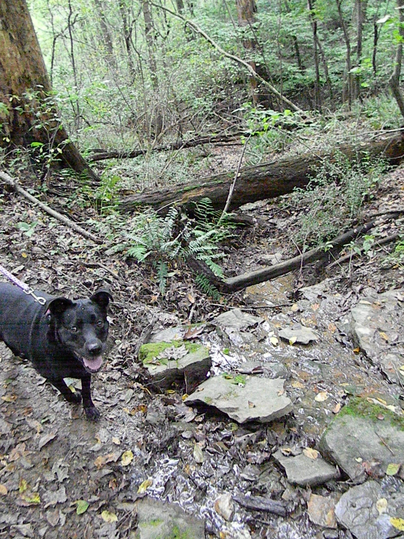 Lola was kind of bad on the trail. She got so excited that she pulled Jimmy down a hill. (hahaha…) and she almost pulled me in a creek! I walk her every day but each time she gets a walk she acts like she has never been outside before.