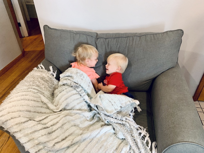 My sister and brother-in-law dropped him off, so we hung out with them for a bit. Sadie and Caroline snuggled under a blanket at it was the sweetest thing.