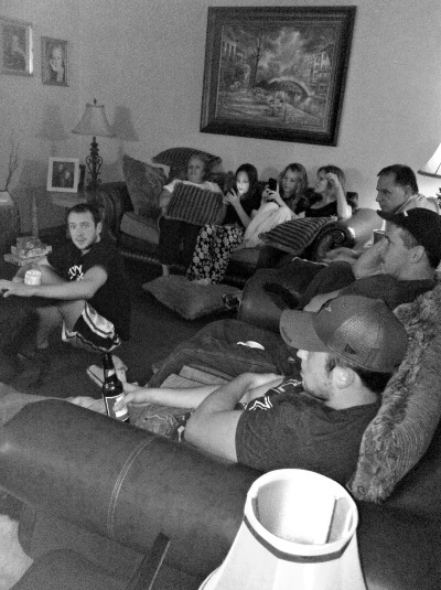 Everyone gathered in our tiny living room to watch my favorite football team (the Dallas Cowboys) lose.