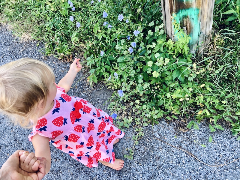 Sadie got bored pretty fast, so I decided to take her outside to walk around and realized I didn’t put shoes on her before we left.