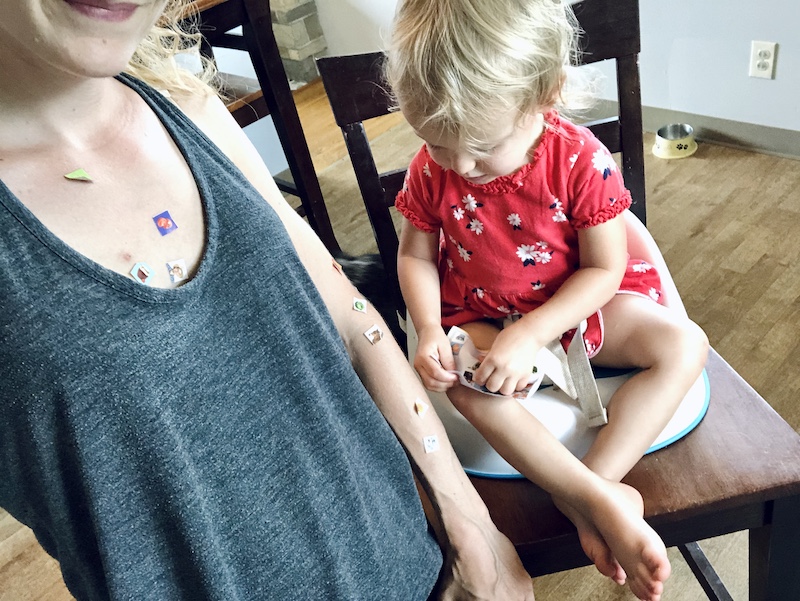 Sadie and I had a sticker party the other day. Jimmy was out running an errand and I needed to do some cooking so I just pulled her chair and booster seat up to the kitchen counter and gave her some stickers while I chopped vegetables for a pot of bean soup.