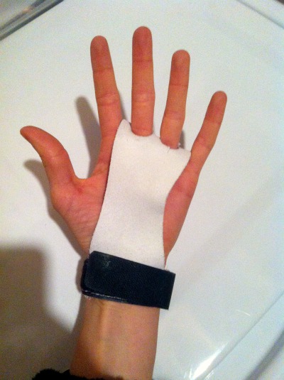 I found my old grips from gymnastics! Grips are what a gymnast wears on their hands when they perform routines on the bars; they basically protect the skin on one’s hands from ripping open.