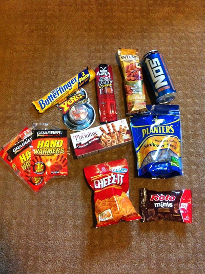 All of the the above goodies went into a care package for Jimmy. He was away for the whole week last week at a job site about three hours from his house. Because he’s a welder, he often has to work outside. I knew it was going to be freezing, so I packed him some hand warmers!